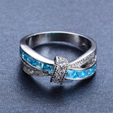 Unique Design Light Blue Zircon Ring White Gold Filled Wedding Party Engagement Finger Rings For Women Fashion Jewelry