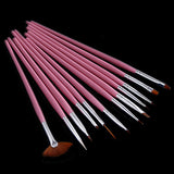 12 Pink Nail Art Design Pen Painting Dotting Brush Set