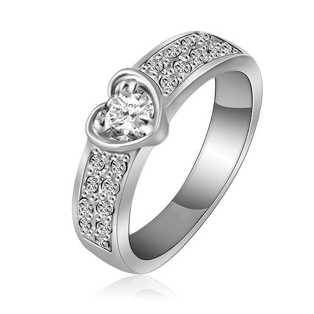 Brand Ring Romantic Rose Gold Plated Heart Rings With Genuine SWA Element Austrian Crystal