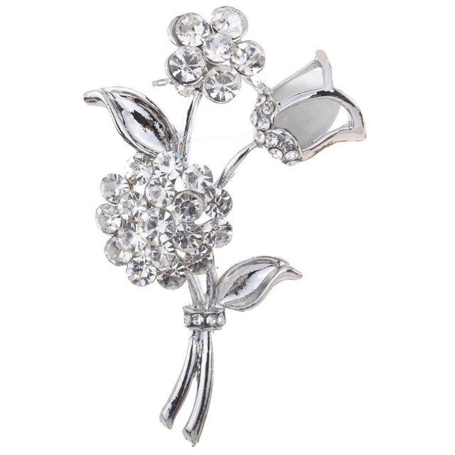Fashion and Fine Jewelry Silver Plated Rose Flower Shaped Curve Full Shining Brooches for Women