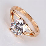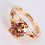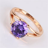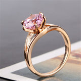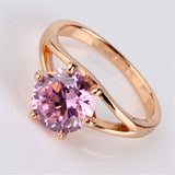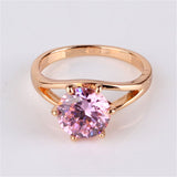 Fashion Brand Wedding Ring 18k Gold Plated Finger Ring Simple Big Pink Crystal Cubic Zirconia Band Jewelry for Women