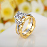 Fashion Lurxury 18K Gold Plated Finger Set Ring for Women Ladies with AAA Cubic Zircon Crystal Jewelry Gift