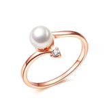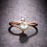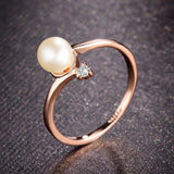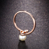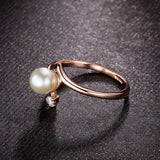 Fashion Rose Gold Plated 1Pcs Simulated Pearl And 1pcs Tiny Rhinestones Accent Bypass Rings For Women Christmas Gifts