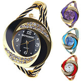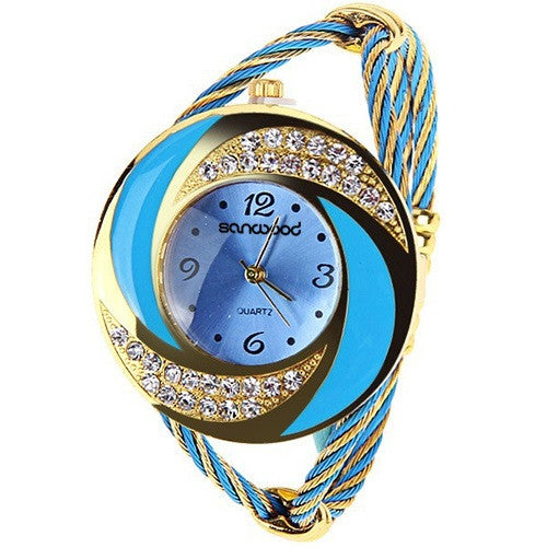Fashion Women Rhinestone Round Crystal Decorated Bangle Cuff Analog Quartz Bracelet Dress Watch