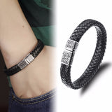 Genuine leather bracelet men stainless steel leather hand woven Bracelet magnetic buckle punk rock pulseiras masculina