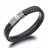 Genuine leather bracelet men stainless steel leather hand woven Bracelet with magnetic buckle punk rock