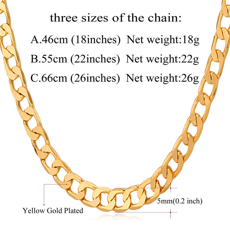 Miami Cuban Gold Plated Chains Necklace Men New 5MM Fashion Party Men Jewelry Gift Wholesale Curb Link Chain
