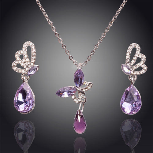 New Austrian Crystal Butterfly Earrings Water Drop Pendant For Women Jewelry Sets Wedding Party Gift