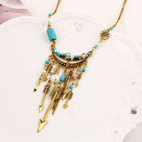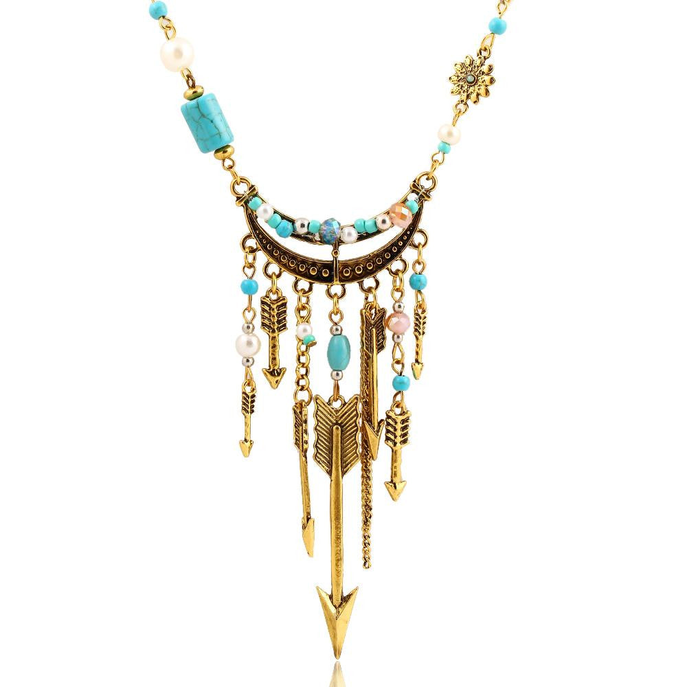 New Bohemia Pendant Turquoise Beads Link Chain Necklace Anchor Arrow Alloy Plated Gold Necklaces Fashion Jewelry For Women