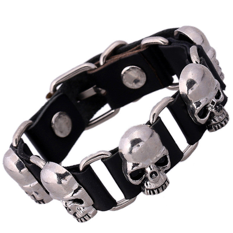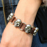 Punk Style Personality Skeleton Skull Bracelet New Fashion Genuine Leather Charm Bracelets Bangles for Unisex Women Men Jewelry