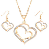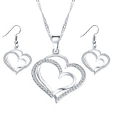 Romantic Heart Pattern Crystal Earrings Necklace Set Silver Color Chain Jewelry Sets Wedding Jewelry Valentine's Gift