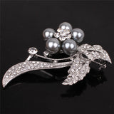Silver Black Pearl Flower 18K Silver Plated Austrian Crystal Brooches&Pin For Women Fashion Jewelry