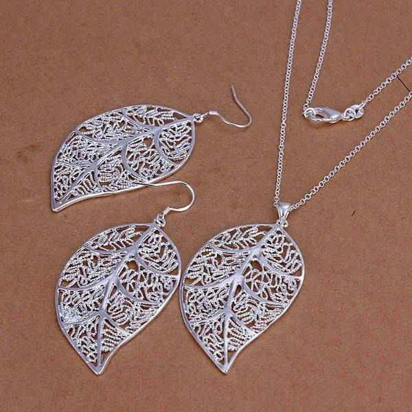 Silver plated leaf jewelry sets necklace bracelet bangle earring ring