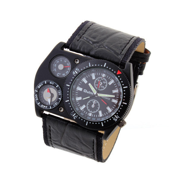 Sports Watch OULM quartz watch Multiple Thermometer Compass cycling leather strap wristwatches military watches