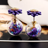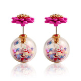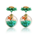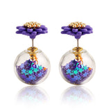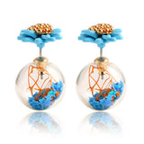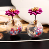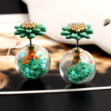 Trendy Ball Double Side Stud Earrings Glass Beads Elegant Sunflower Statement Earrings Summer Style Fashion Jewelry