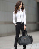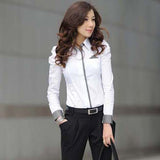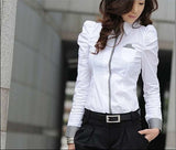 Hot Sell White Women Shirt Sexy Ol Women Fashion Turn-Down Collar Shrug Bubble Long Sleeve Slim Cotton Shirt Blouse Top