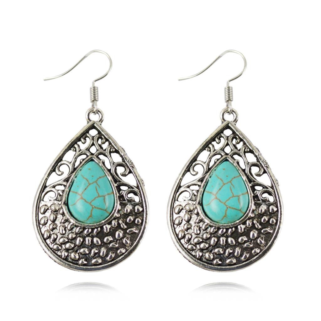 Bohemia Dangle Earrings Fashion Tibetan Turquoise Water Drop Shaped Earrings For Women Long Earrings Fine Jewelry