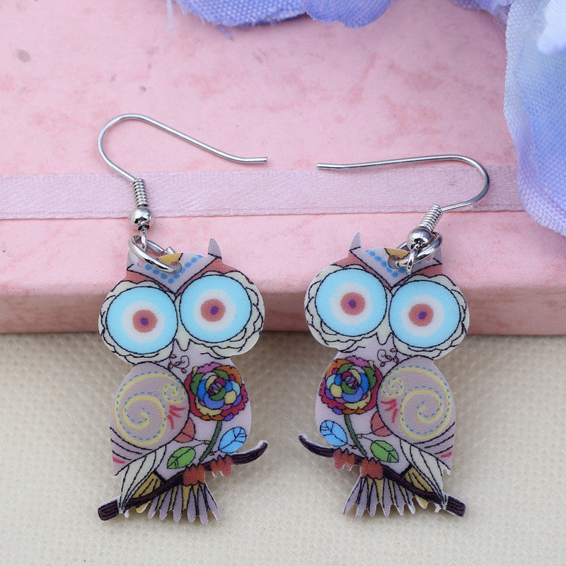 Bonsny Drop Owl Earrings Big Long Dangle Earring Acrylic Cute Pattern Fashion Jewelry For Women New Style Girl Accessories