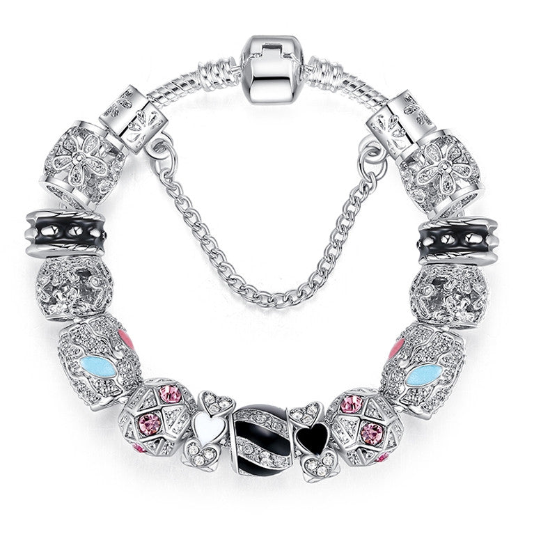 Bracelets For Women Silver Plated Crystal Beads Bracelet Snake Chain Bracelet Fit Original Bracelet Bangle Authentic Jewelry