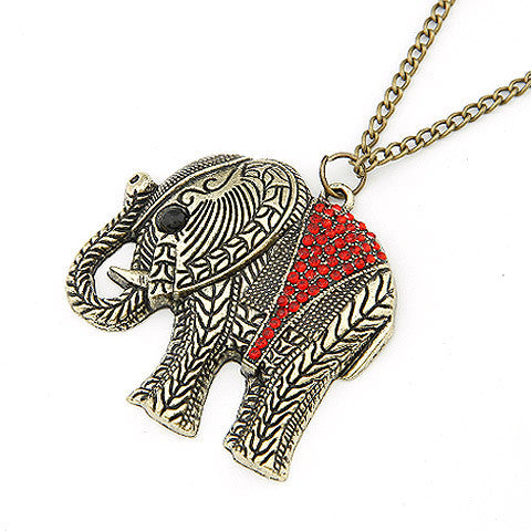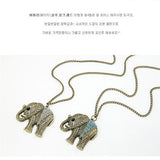 Fashion Elephant Ethnic Necklace Full Crystal Thailand Elephant Pendant Sweater Long Chain Fine Necklace For Women