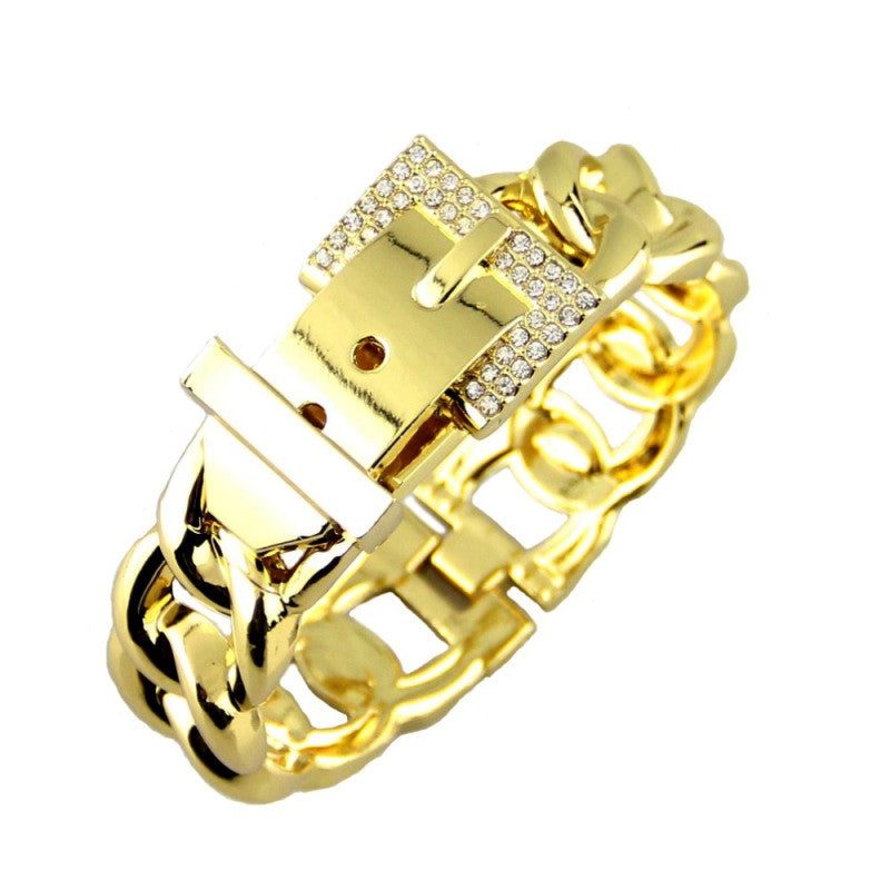 Fashion Women Belt Design Bracelets Accessories Zinc Alloy Rhinestones Metal Charm Cuff Bangles Statement Jewelry