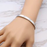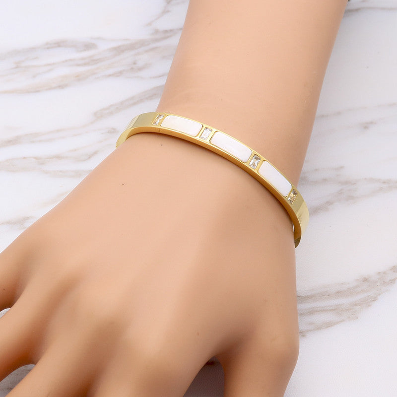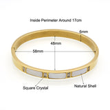 Gold Plated Stainless Steel Natural Shell Bracelets Bangles, Roman Letter Crystal Bangle For Women Jewelry pulseiras joyas