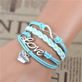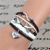 New Fashion Infinity Love Birds Sister Charm Bracelet With Handwoven leather Bracelets for Women Man Valentine's Day Gift