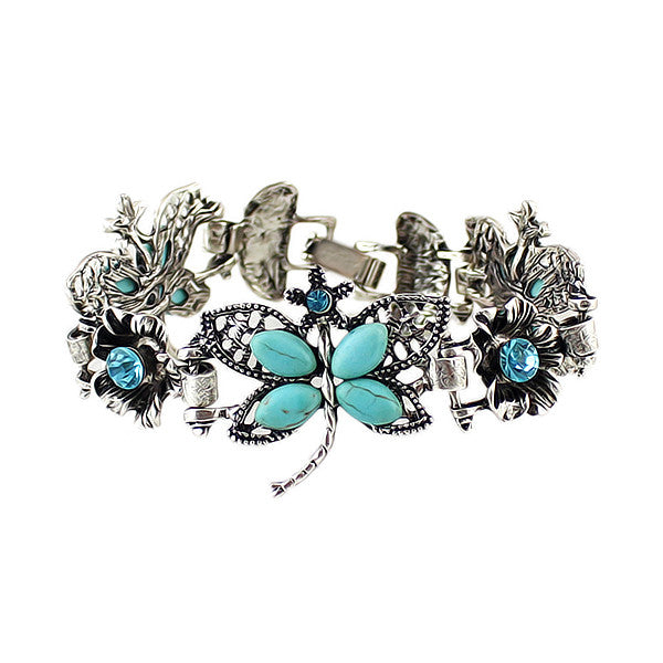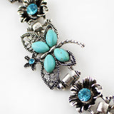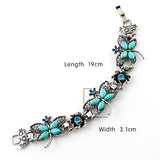 Retro Style Blue Rhinestone Butterfly Antique Party Charm Bracelets For Elegant Women