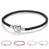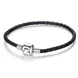 Silver Plated Clasp Genuine Leather Bracelet Fit Women Men Original Charm Bracelet Necklace DIY Jewelry