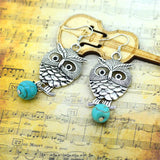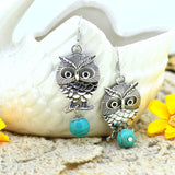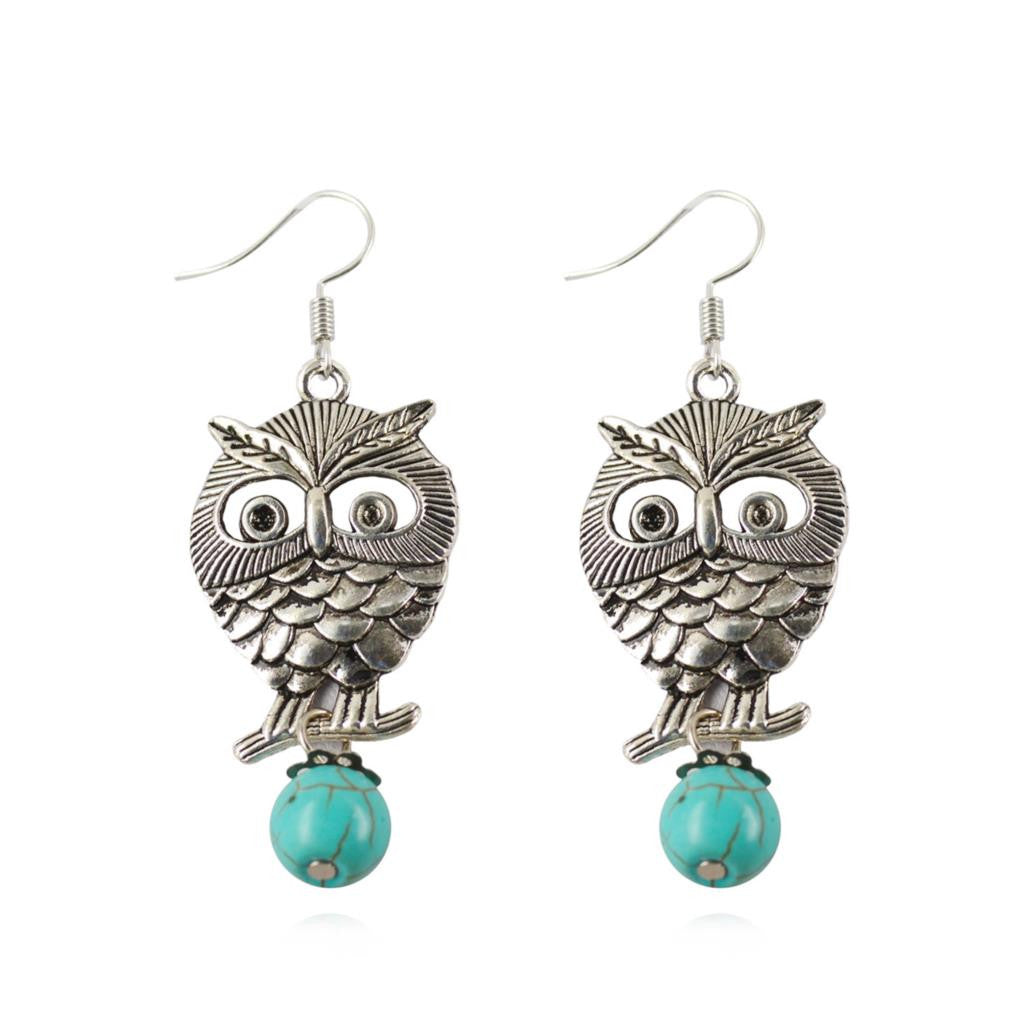 Turquoise Owl Women's Dangle Earrings Pendientes Ancient Earrings for Woman Gift Brincos Fine Jewelry Summer Style
