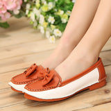 Women genuine leather shoes woman flat causal genuine leather loafer womens flats flexible boat shoes