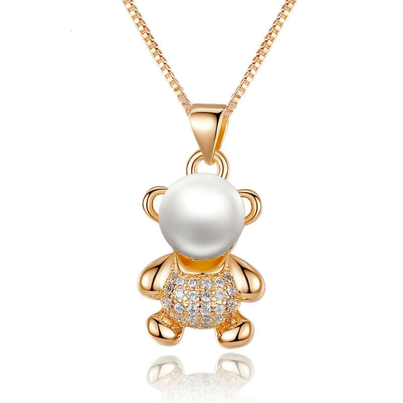 18K Gold Plated Animal Bear Necklaces & Pendants with Paved 25 Piece Micro AAA CZ Cubic Zircon For Women Jewelry