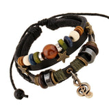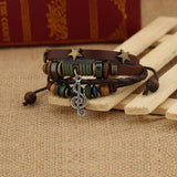 Bronze Star Rivets Cowhide Women Bracelets Charm Musical Notes Bracelet Pendants Leather Braided Snake Chain Bracelet