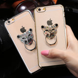 Metal Plating Bling Diamond Pattern Case For Iphone 6 6s / 6s Plus Hard PC Ring Animal Stand Back Phone Cover