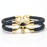 New Arrival baseball stingray leather skull bracelet Luxury man Skull Bracelet handmade high qaulity leather bracelet