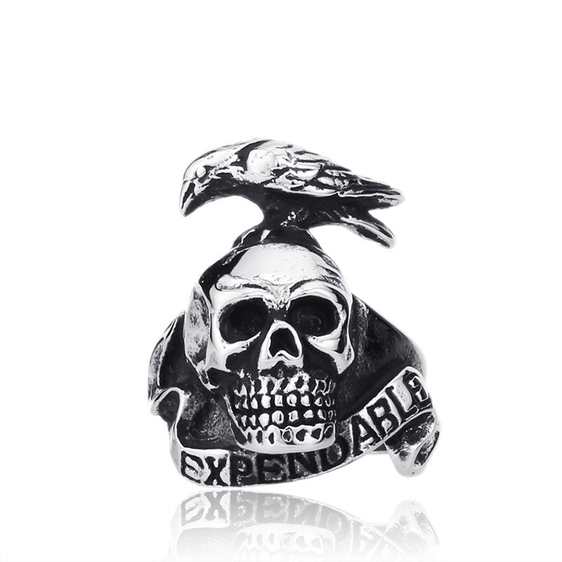 Punk Style Expendable Ring For Men 316L Stainless Steel Bird On Skull Ring Jewelry