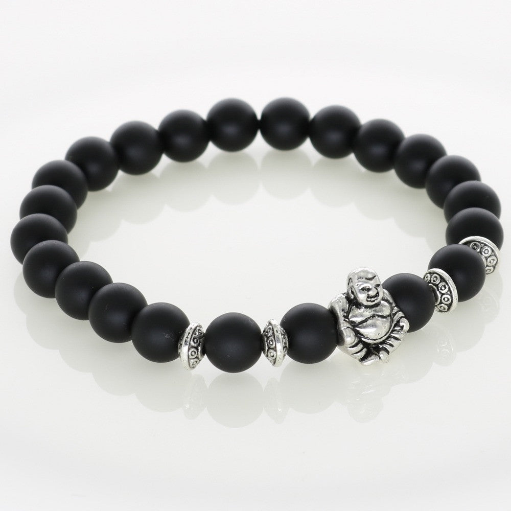 Silver Laughing Buddha Lucky Charm Bracelets Onyx Agate Stone Matt Beads For Men Bracelets Jewelry Women Fashion Accessories